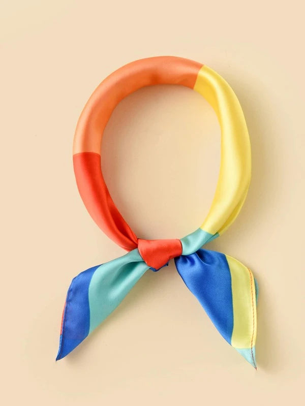 Made of high quality and durable imitated polyester fabric, this vibrant scarf can be worn daily in different ways as an elegant neckerchief, handbag handle ribbon, scarf bracelet, or as a head and hair bandana. Color: multicolor