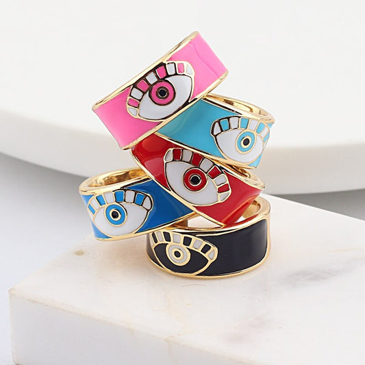 خاتم عين الشر مطلي بالذهب عيار 18 قيراط