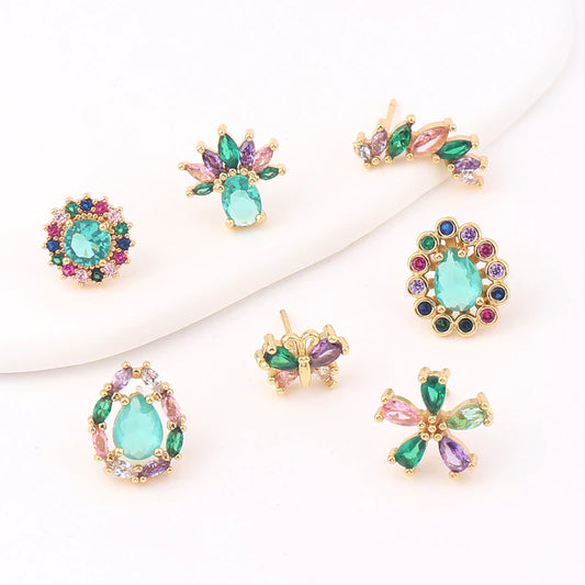 قرط أذن على شكل زهرة من الزركون مطلي بالذهب عيار 18 قيراط
