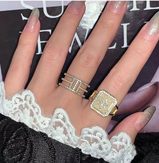 خاتم مطلي بالذهب عيار 18 قيراط مرصع بالزركون الهندسي