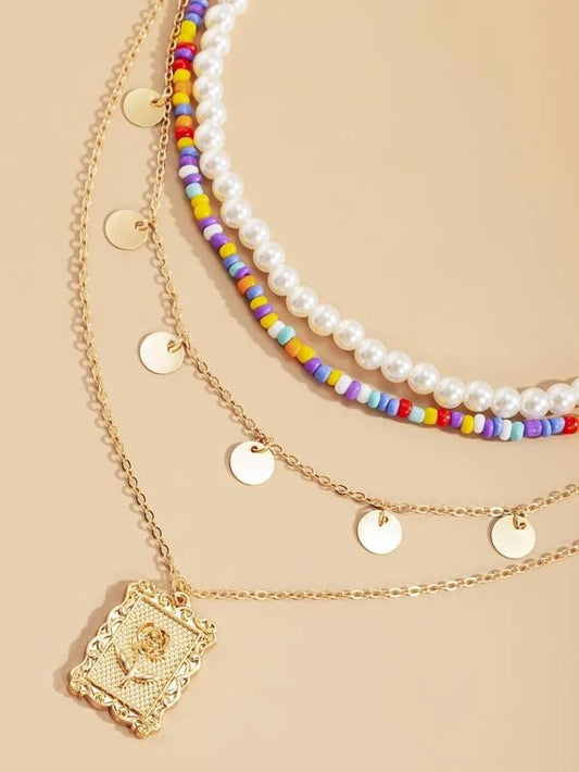 2pcs Pearl & Flower Necklace